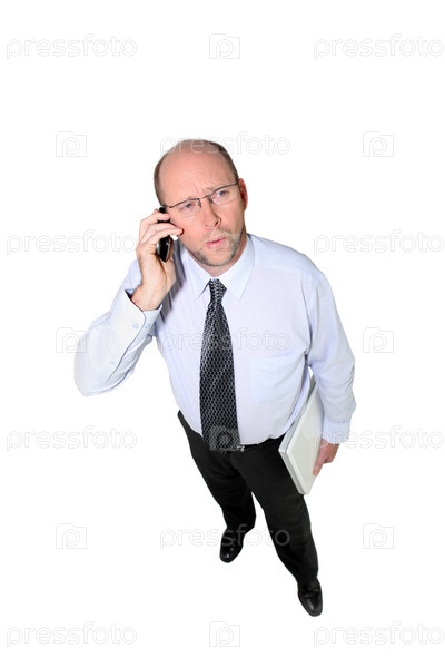 Лысый бизнесмен с телефоном