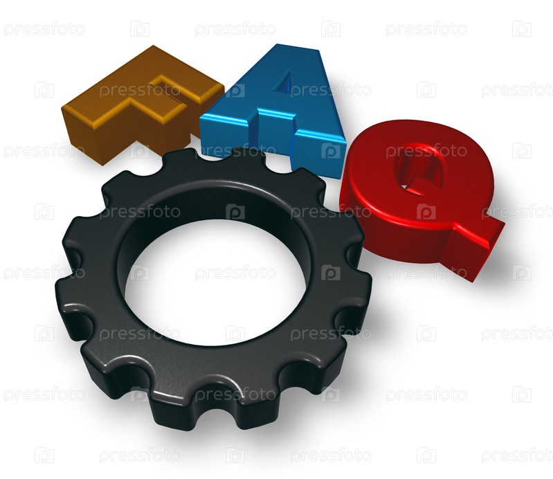 Тег FAQ и деталь на белом фоне - иллюстрация 3d