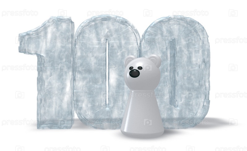 Замороженное число 100 и белый медведь - 3d иллюстрация