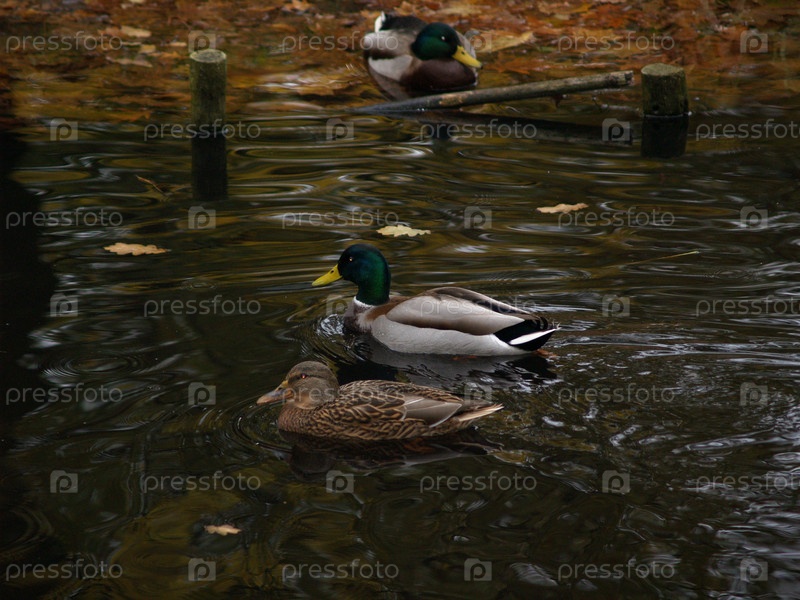 Утки в воде в Варшавском парке