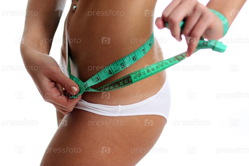 Девушка измеряет талию. Крупный план