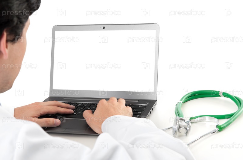Доктор и ноутбук с пустым экраном
