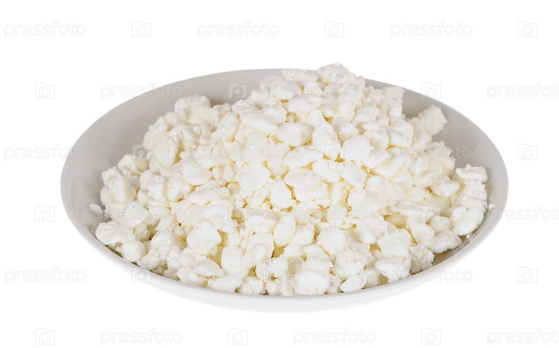 Тарелка с творогом на белом фоне