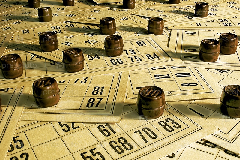 Карточки и бочонки для игры в лото, крупным планом