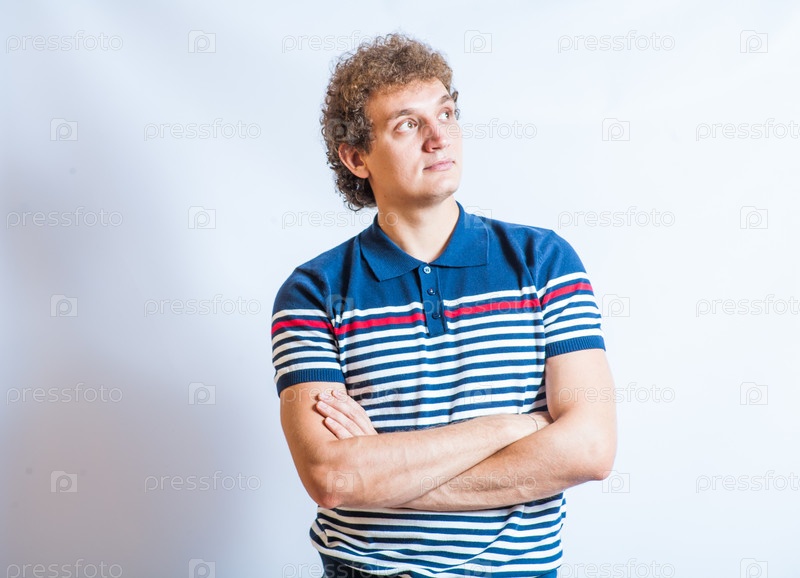 Портрет молодого счастливого улыбающегося мужчины на сером фоне