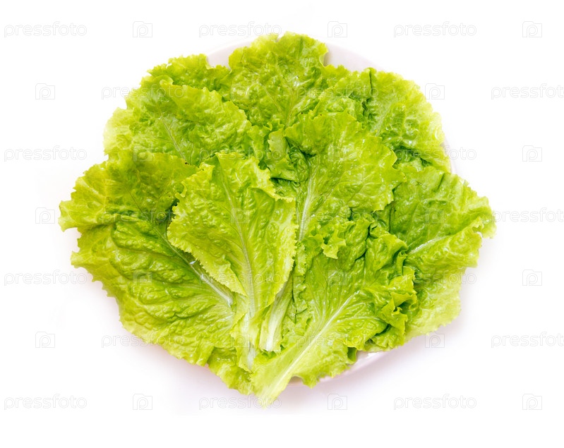 Листья зеленого салата на белом фоне