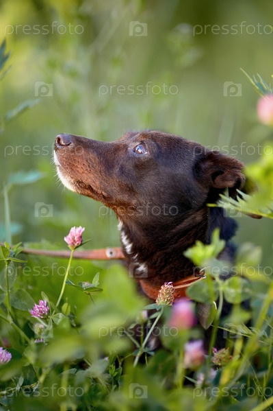 Портрет черной собачки в клевере