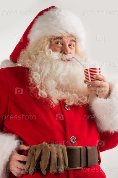 Портрет Санта-Клауса, пьющего молоко из стакана