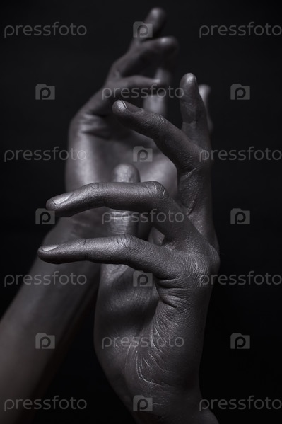 Крупный план двух серебряных окрашенных рук на черном фоне