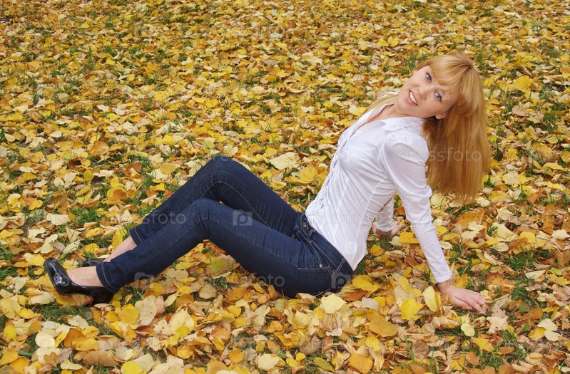 Девушка на желтой листве