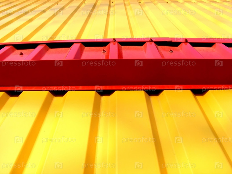 Современный дизайн здания металлического красного и желтого цвета