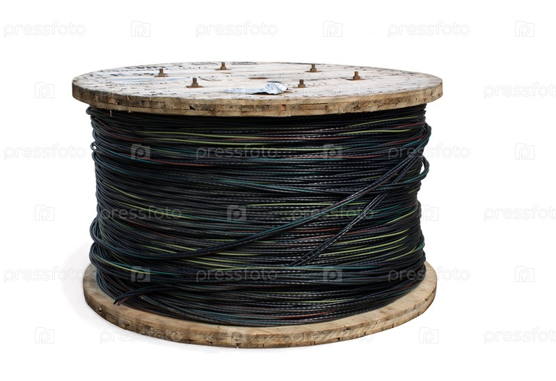 Барабан с силовым проводом на белом фоне