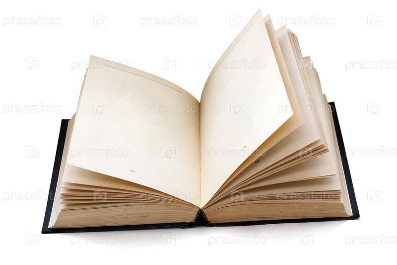 Старая открытая книга с пустыми страницами, изолированная с тенями
