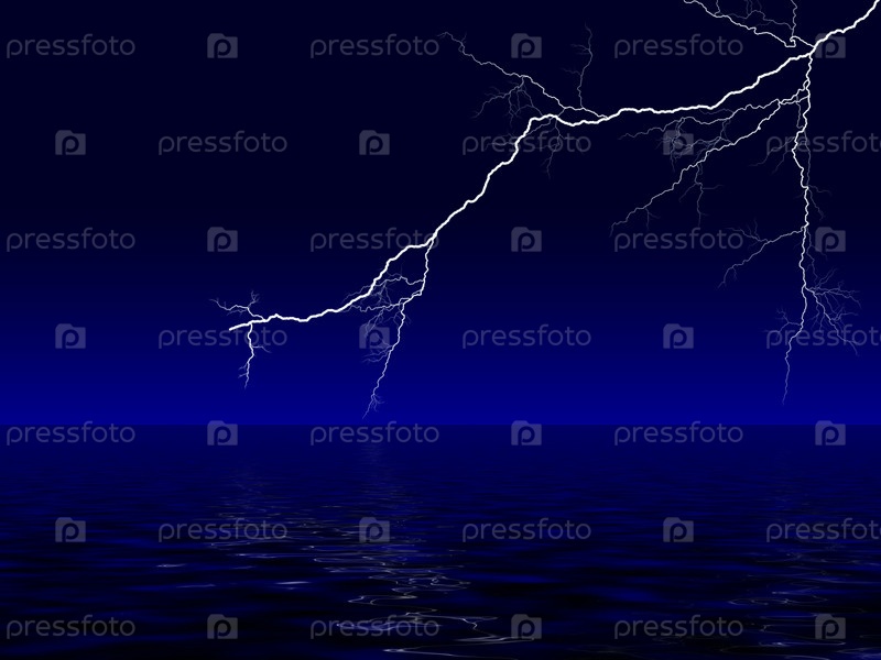Океан темно-синий пейзаж с грозовыми молниями