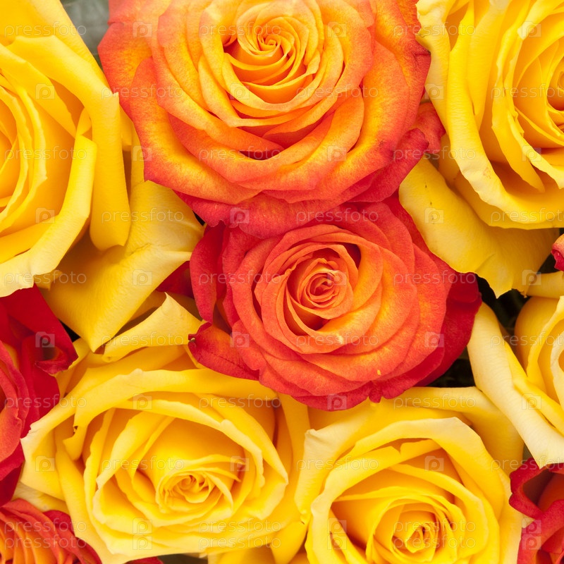 Много красно-желтых роз крупным планом