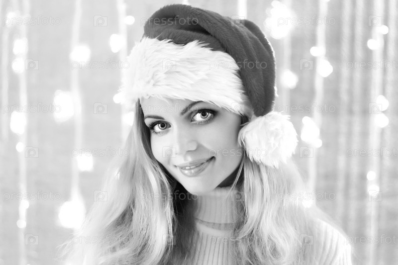 Портрет привлекательной девушки в шапке Санта-Клауса
