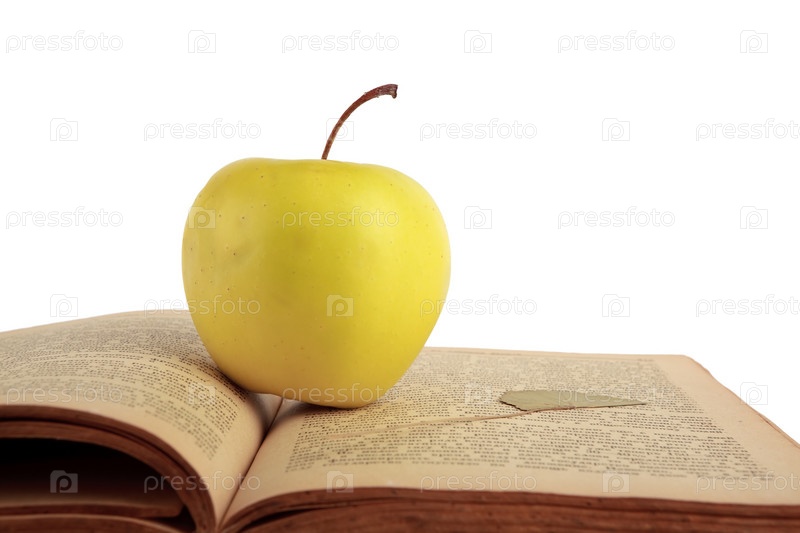 Желтое яблоко на раскрытой книге