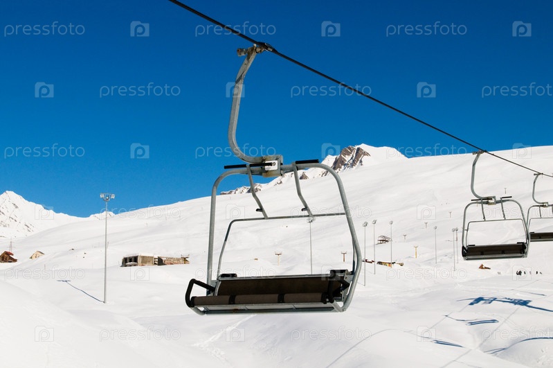 Подъемник на фоне заснеженных гор