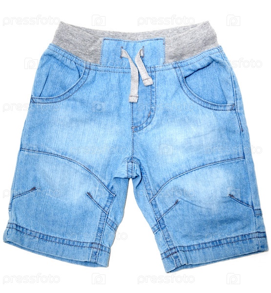 Голубые джинсовые шорты на белом фоне