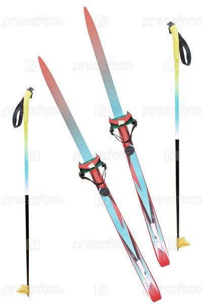 Лыжное оборудование на белом фоне