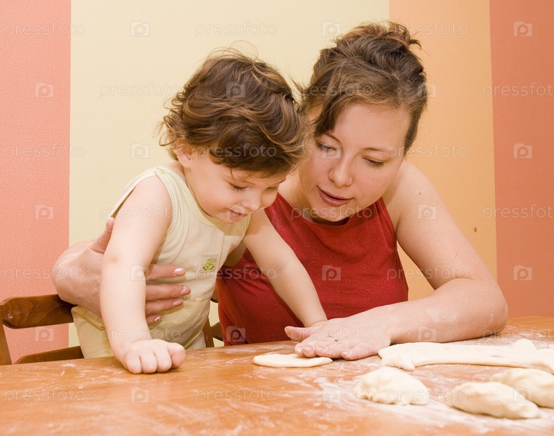 Мама с сыном лепят вареники