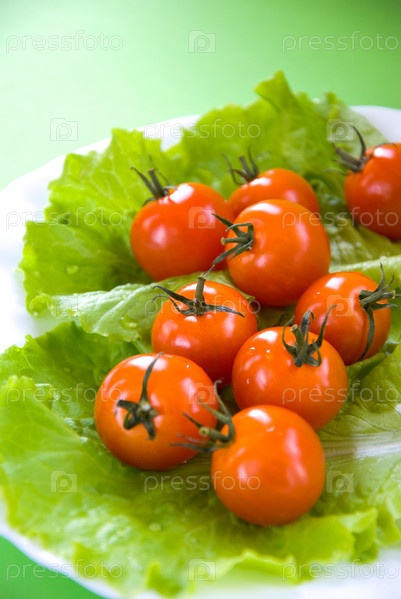 Помидоры черри и листья салата на тарелке
