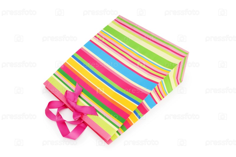 Полосатый подарочный пакет на белом фоне