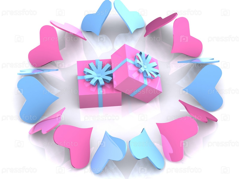 Сердца вокруг подарков