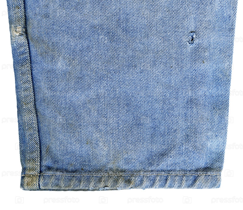 Грязная джинсовая ткань на белом фоне