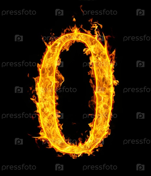 Огненная цифра 0 на черном фоне