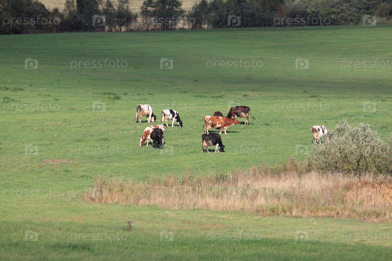 Коровы на зеленом лугу