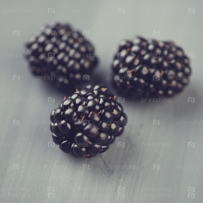 Макросъемка спелой ежевики на сером фоне