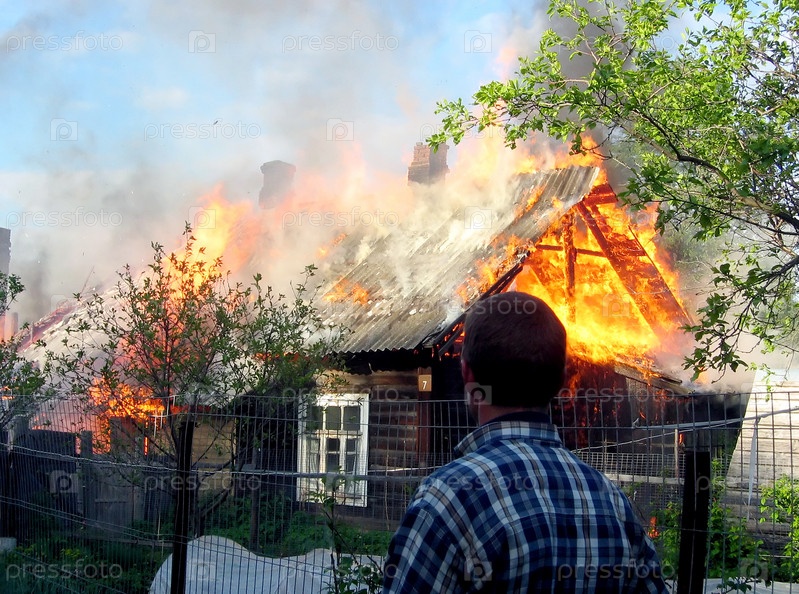 Горит деревянный дом