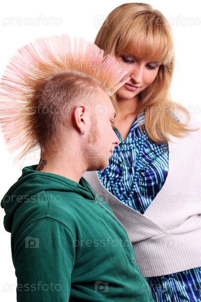 Панк и блондинка на белом фоне