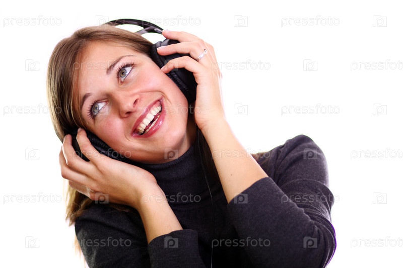 Веселая девушка в наушниках