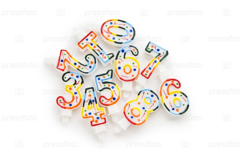 Свечи-цифры для именинного торта, изолированные на белом фоне