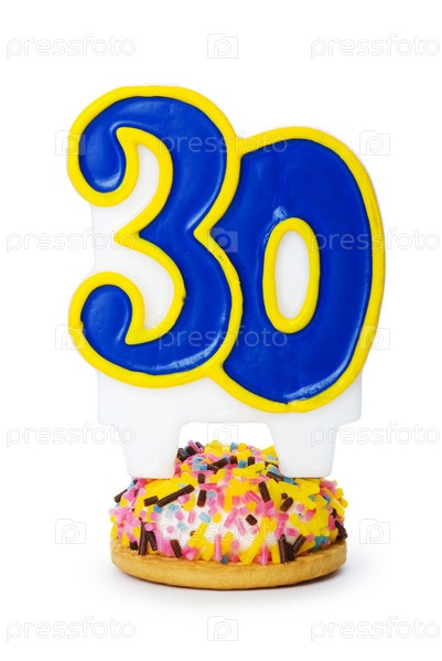 Свеча-цифра на пирожном, изолировано на белом фоне