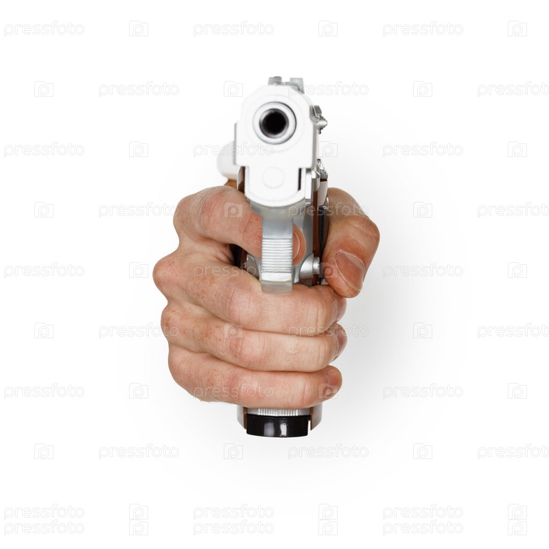Рука с пистолетом на белом фоне