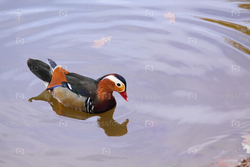 Мандаринка, плавающая в воде