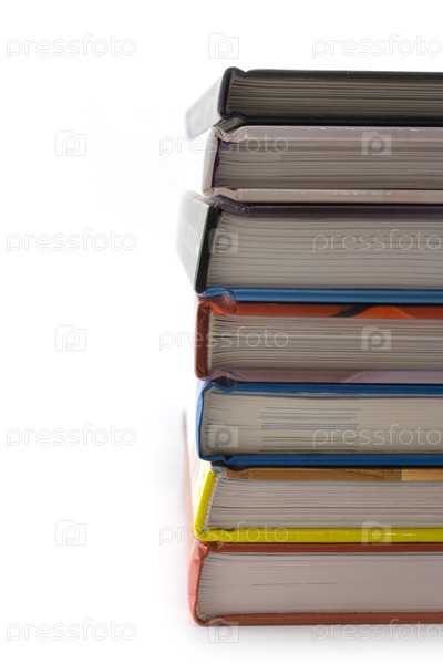 Куча толстых книг на белом фоне