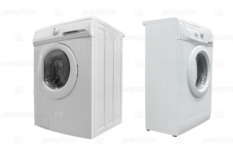 Стиральные машинки на белом фоне