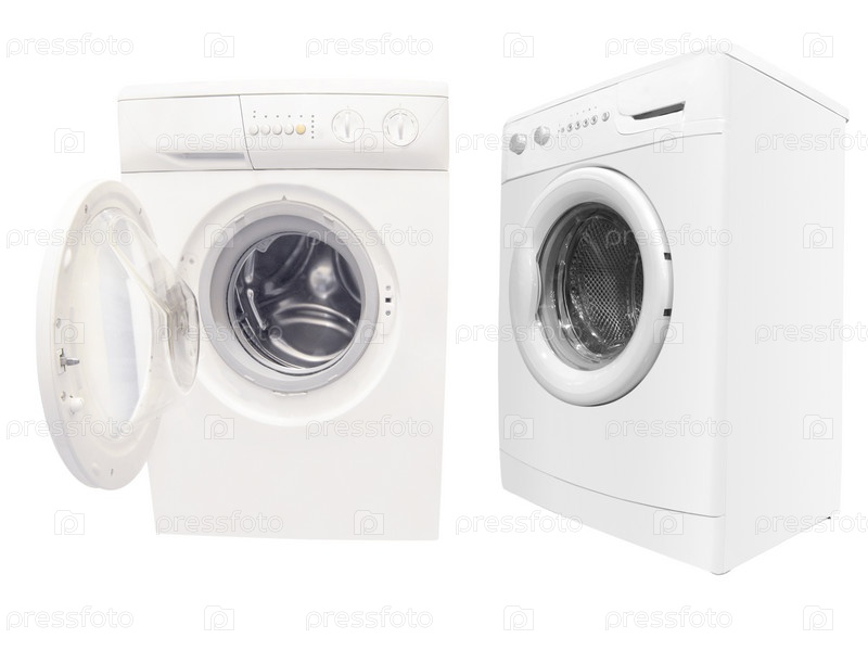 Стиральные машинки на белом фоне