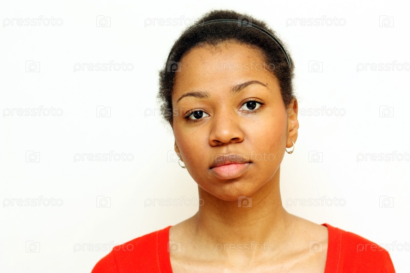 Темнокожая девушка крупным планом на белом фоне