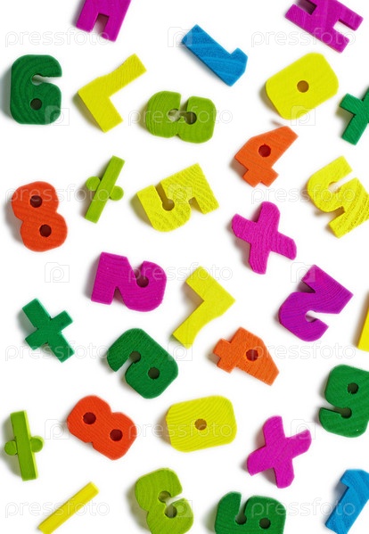 Деревянные игрушки в виде цифр на белом фоне