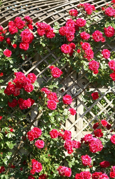 Розовые розы на заборе
