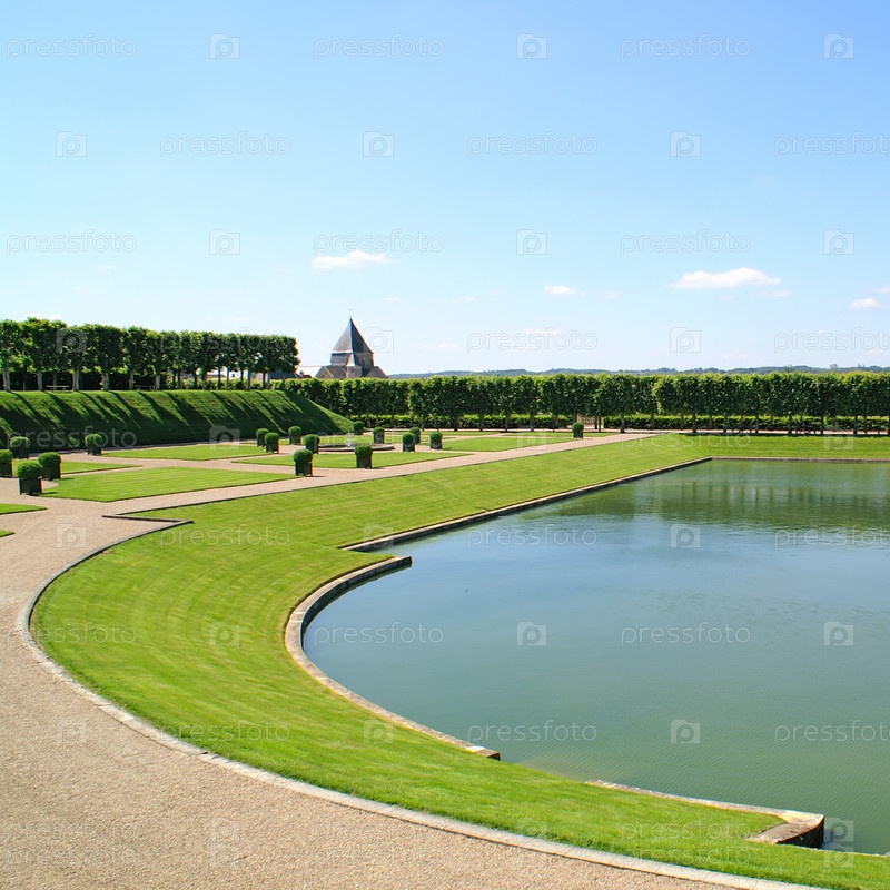 Искусственный пруд на фоне парка