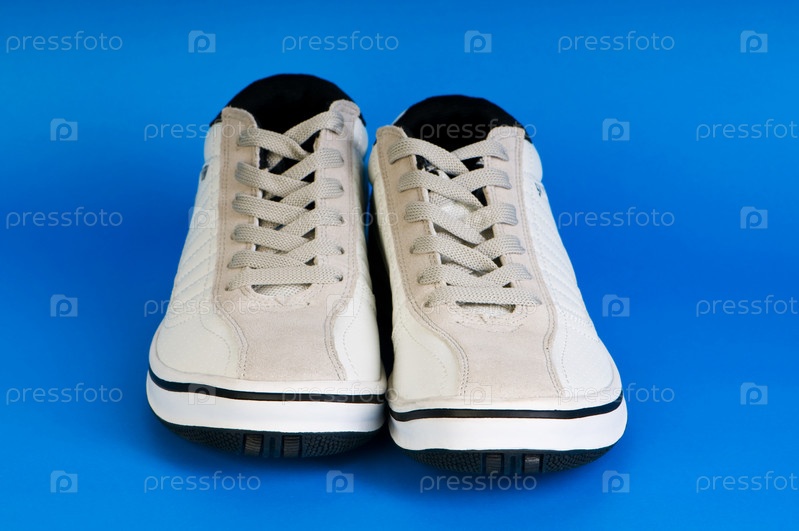 Мужские кроссовки на синем фоне