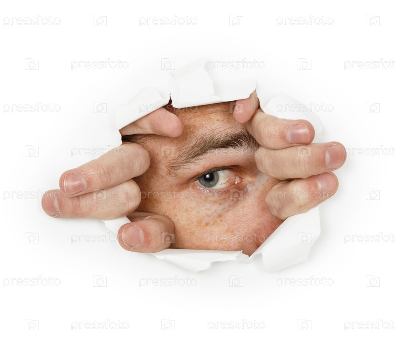 Человек прорывается через белую бумагу