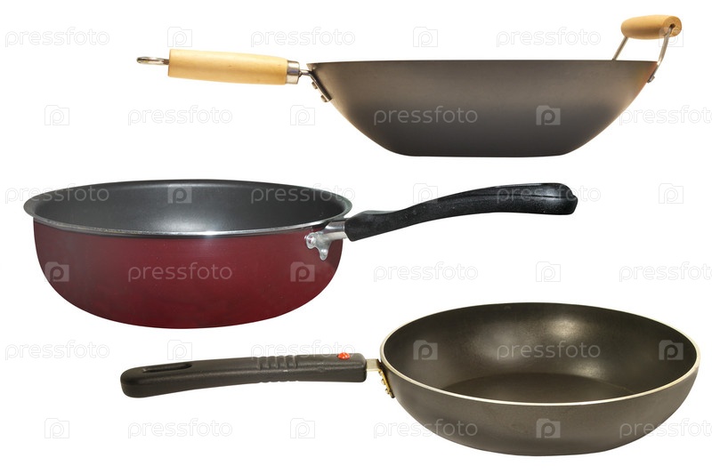 Сковороды на белом фоне