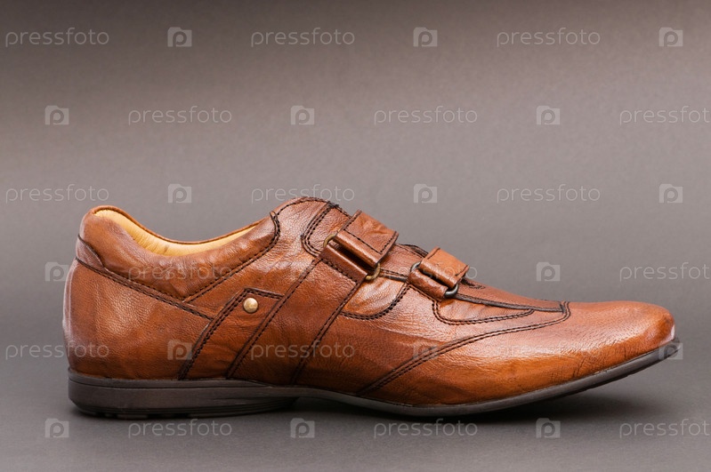 Коричневый мужской ботинок на сером фоне